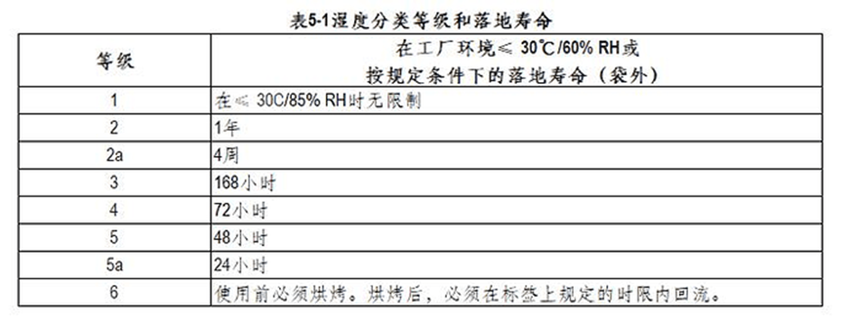 为解决此问题,电子业界推出了JEDEC标准J-STD-033B,即,制定了有关处理、包装、运输和使用具有湿度敏感性物料的标准。受MSL影响的物料需采用 防潮袋 包装,并附有 湿度卡 和适当的MSL标签。湿度卡用于表示物料的暴露情况,可充当视觉指导。干燥剂包有助于去除密封袋中的多余水分。