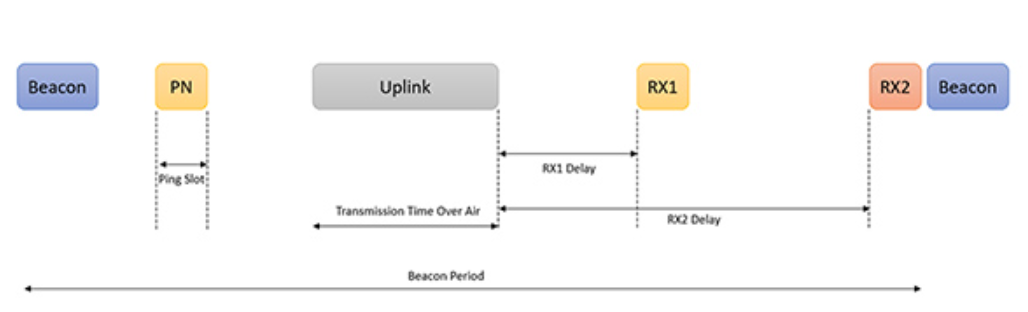 图 3:LoRaWAN B 类设备利用所连接网关发送的信标来保持定时,从而实现同步的下行链路。(图片来源:Murata Electronics)