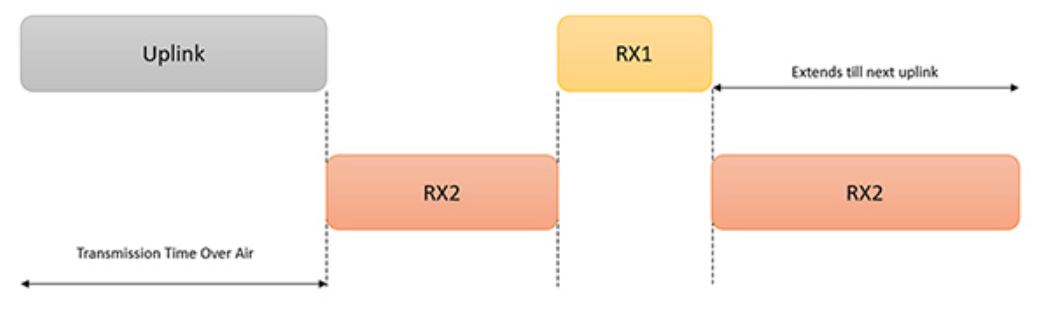 A 类设备能效最高,设计用于事件驱动的操作,例如当传感器检测到环境变化时。A 类设备可在两次事件之间保持休眠状态,仅在传感器采集数据后唤醒足够传输数据的时间,然后在上行链路传输后以指定的延迟(RX1 和 RX2)打开下行链路接收窗口(图 2)。