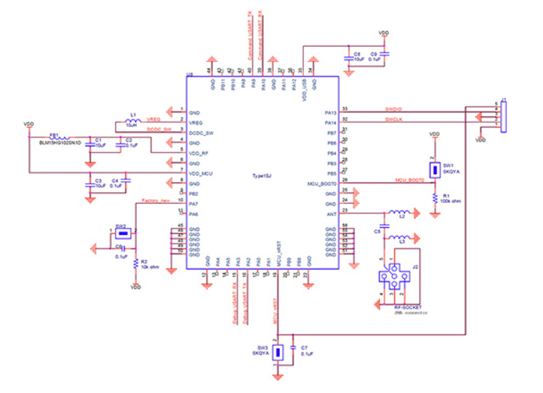 评估板启动后,开发人员可使用终端仿真程序或图形用户界面 (GUI) 测试工具测试模块的运行情况,这些工具可供注册评估板用户使用。为扩展调试,该评估板提供了串行线调试 (SWD) 和 USB 连接器,用于连接 STMicroelectronics ST-LINK 调试器/编程器。